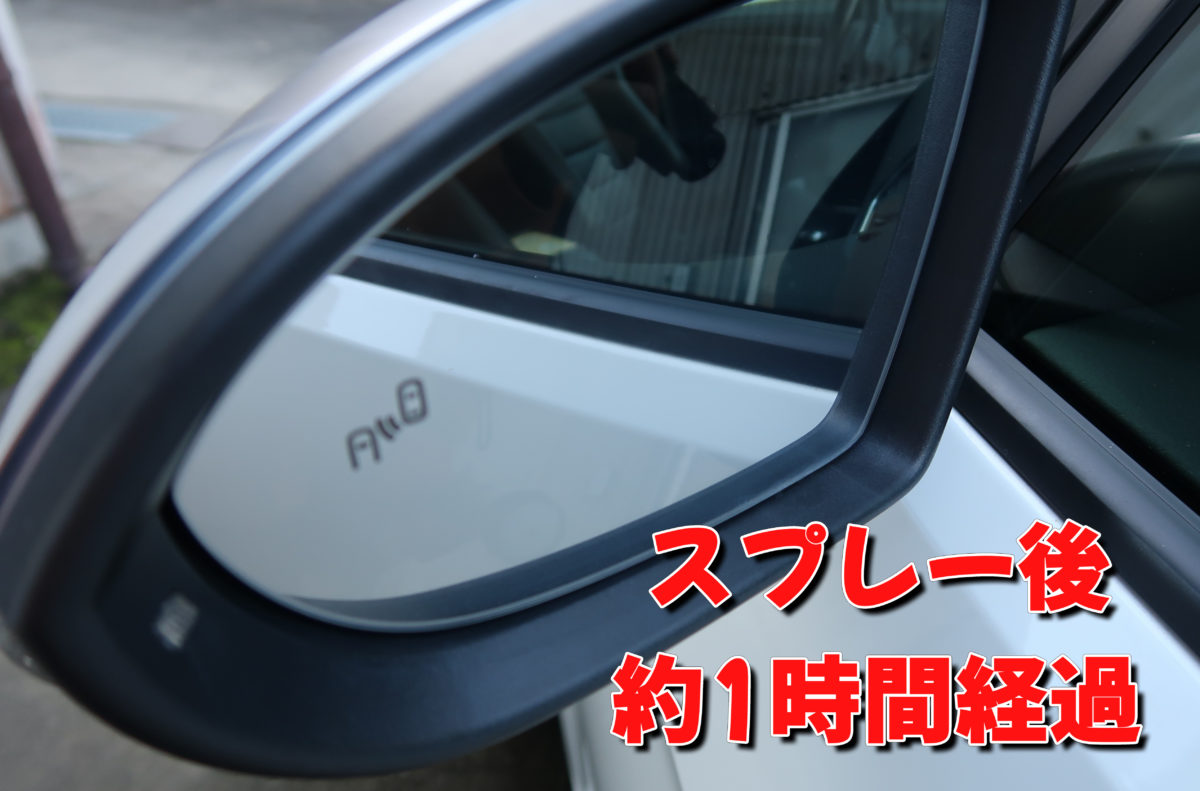 吹き付けた後にミラーが曇り初めてちょっと焦りましたが、時間が経つと矢印の所のように曇りがフワ〜っと無くなっていきます!