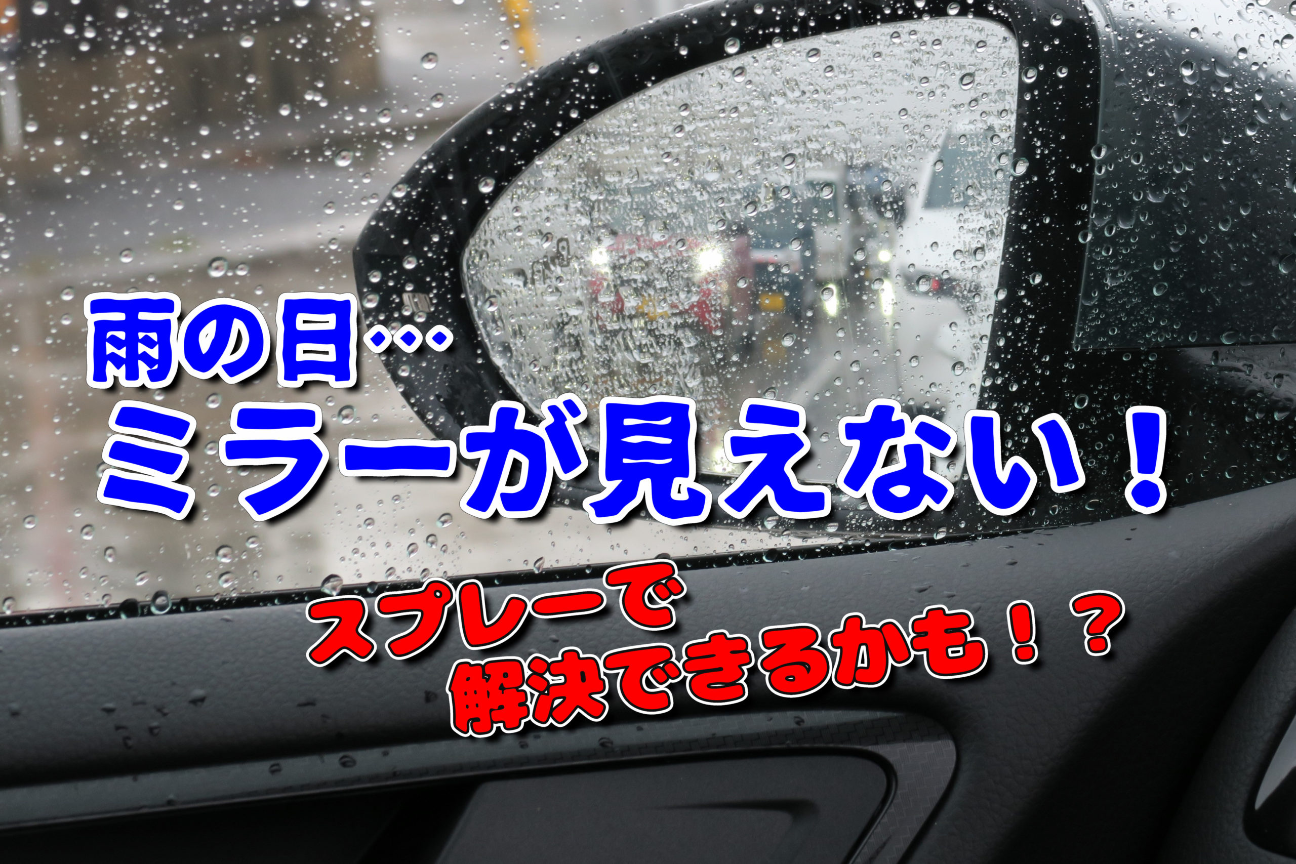 真夜中の土砂降りの日、私は車をバックで駐車しようと試みていたのですがサイドミラーを見ると、大雨で大量に付着した水滴がヌメヌメしておりミラーとしての機能が完全に失われ、白線と輪留めが全く見えませんでした!😭