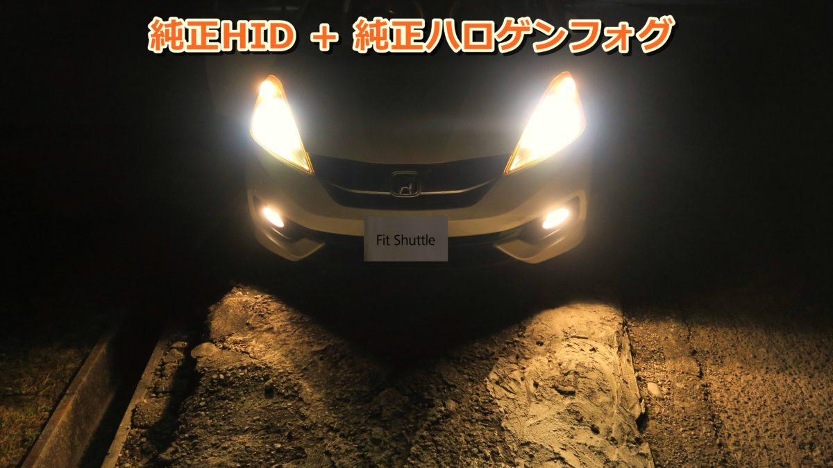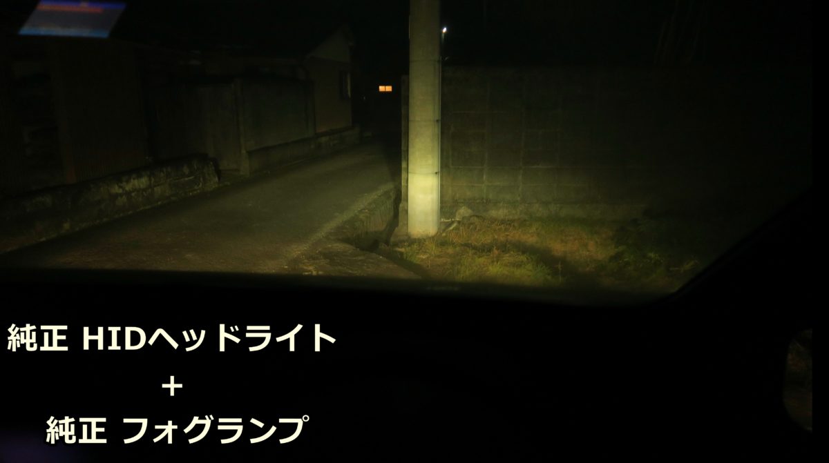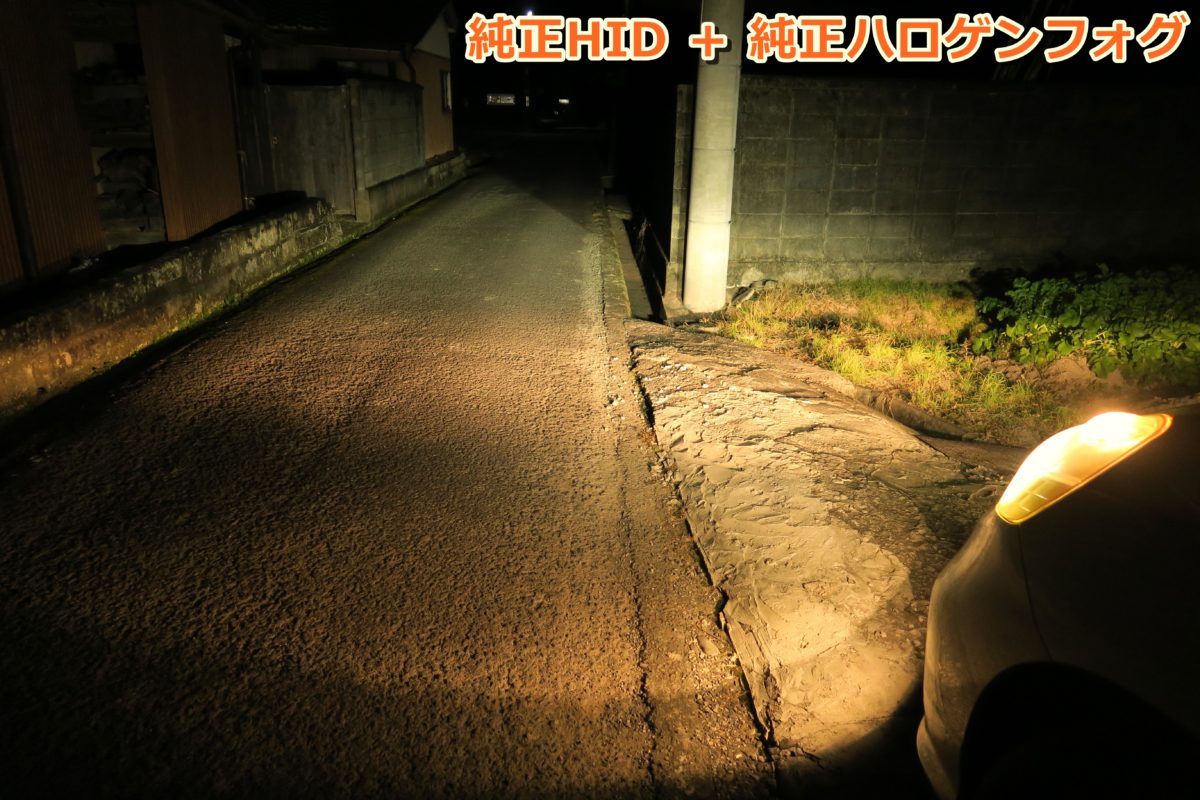 純正状態ヘッドライト(HIDバルブ)フォグランプ(ハロゲンバルブ)の様子です。