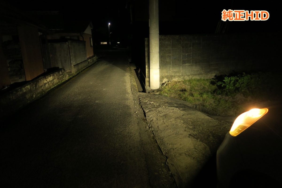 私の肉眼で見た純正ヘッドライトの明るさと同じくらいにカメラの撮影設定を固定して撮影しています。