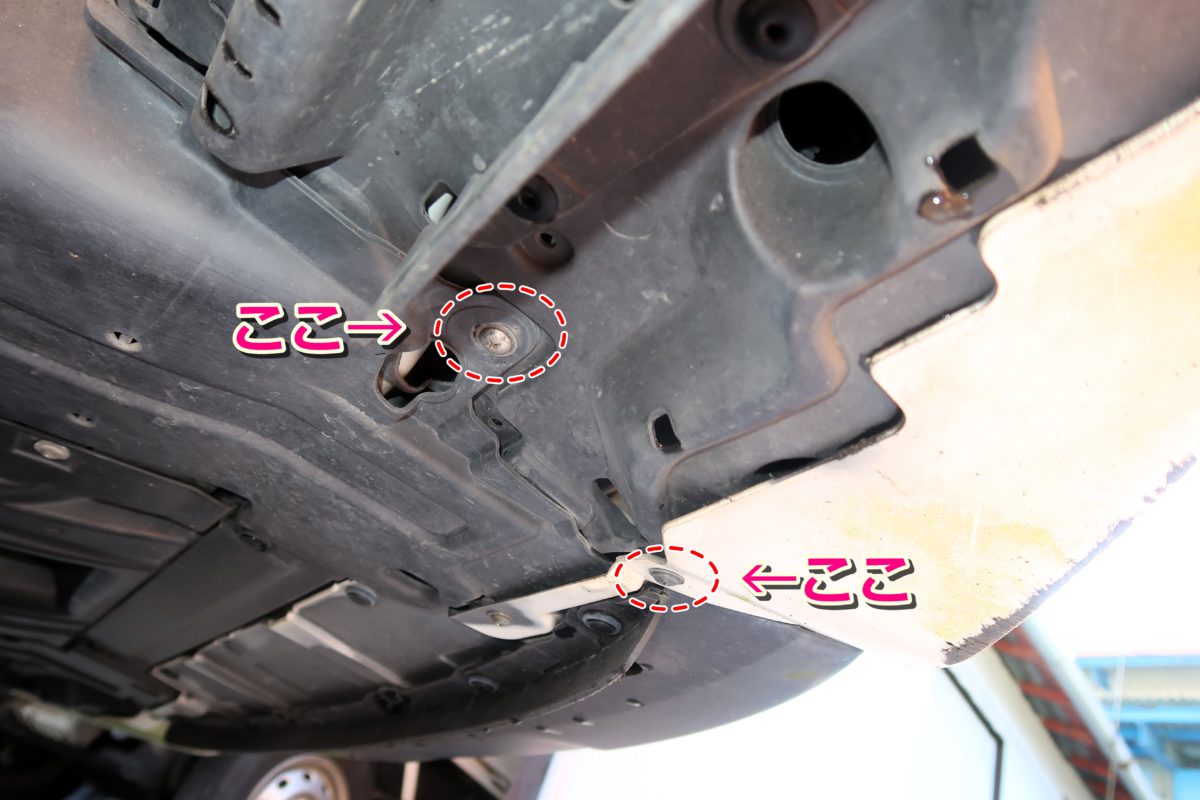 フロントバンパーに真下に潜り込む事が出来るようなスペースがある段差的な場所が都合よくあればジャッキアップしなくても交換できるかも!?