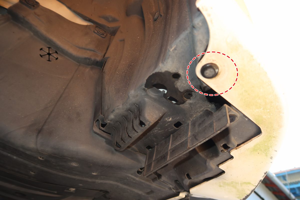 こちらは助手席側から潜った時のインナーフェンダーの様子です。