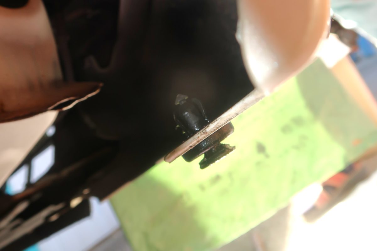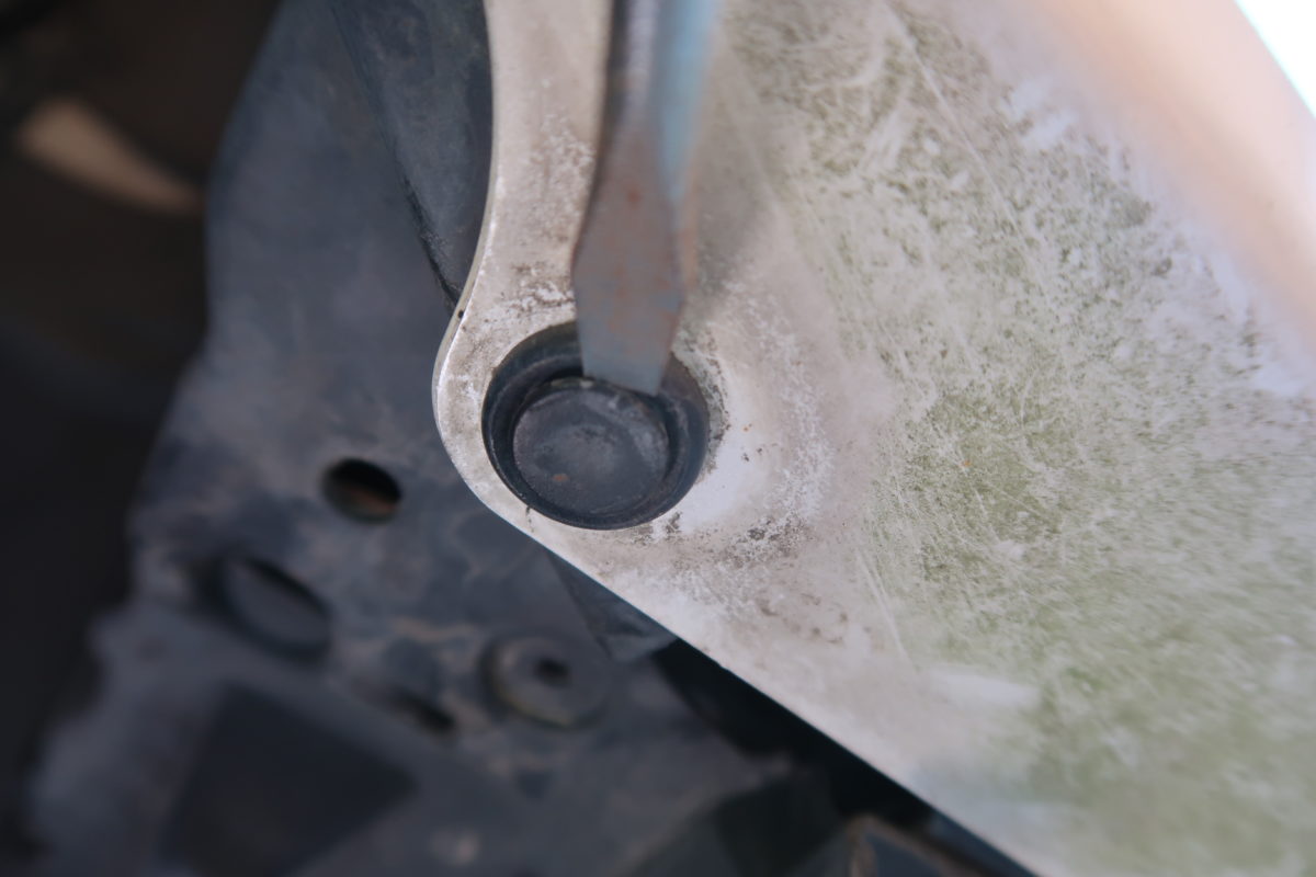 インナーフェンダーから外れたプッシュリベットの様子です。
