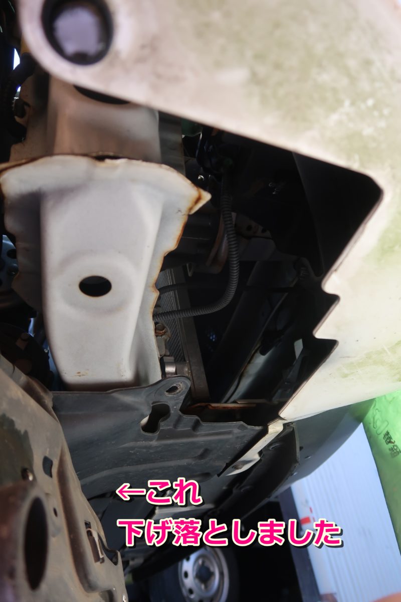 インナーフェンダー本当は上に押し込む様になっていましたが、車体下から潜り込んでの作業だとなんだか作業しにくかったので逆に下げ落としてやる事にしました💦