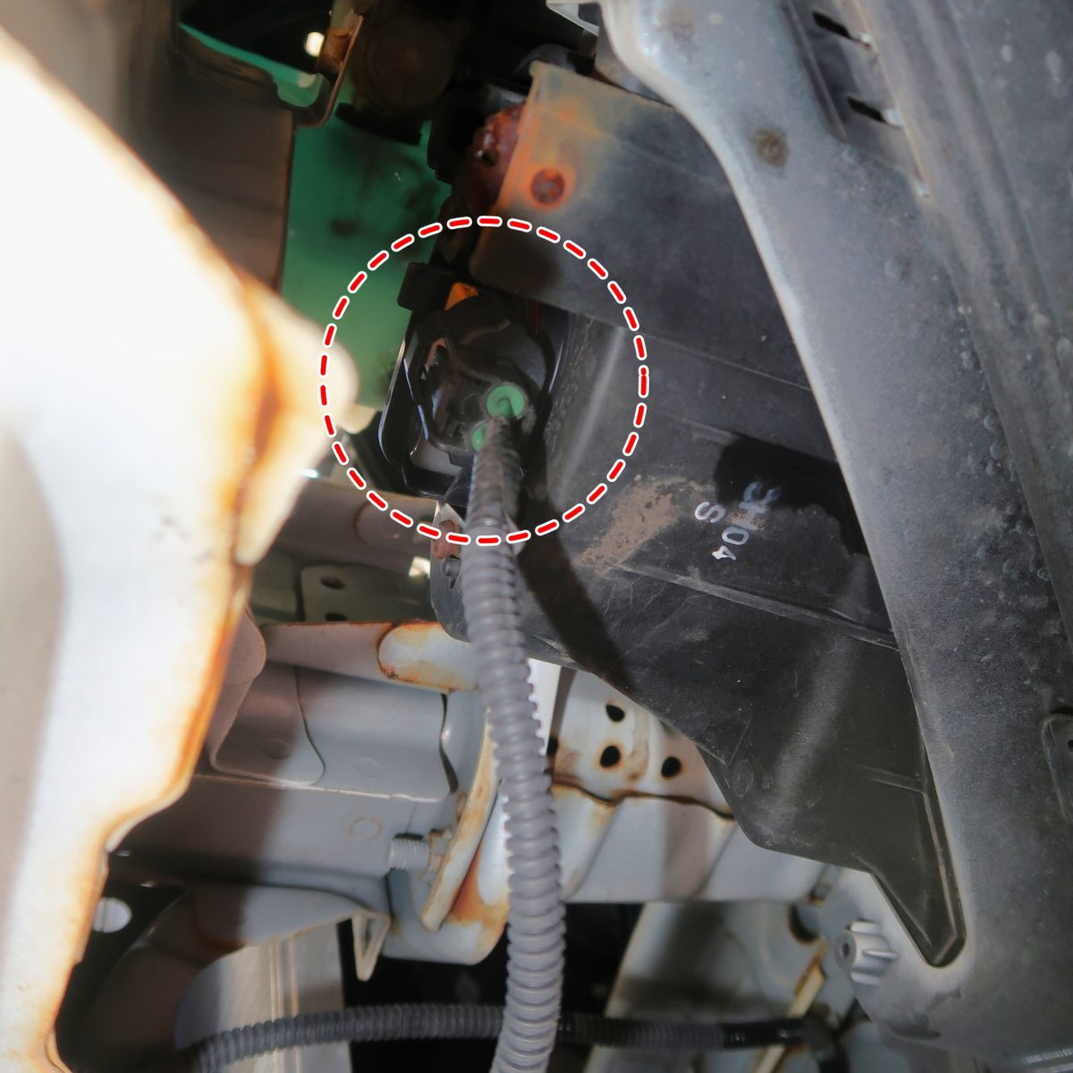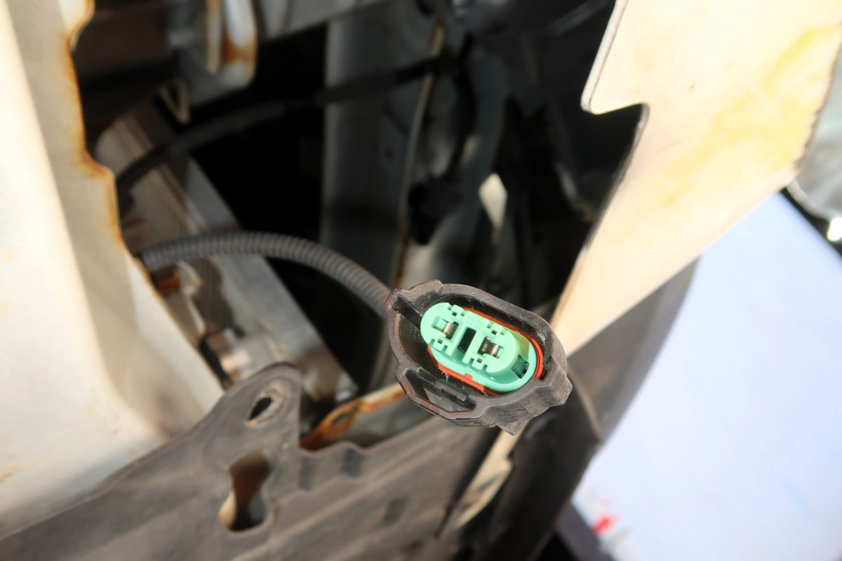 インナーフェンダーを交わし、下から覗き込むとフォグランプに接続されているカプラーが見えました!