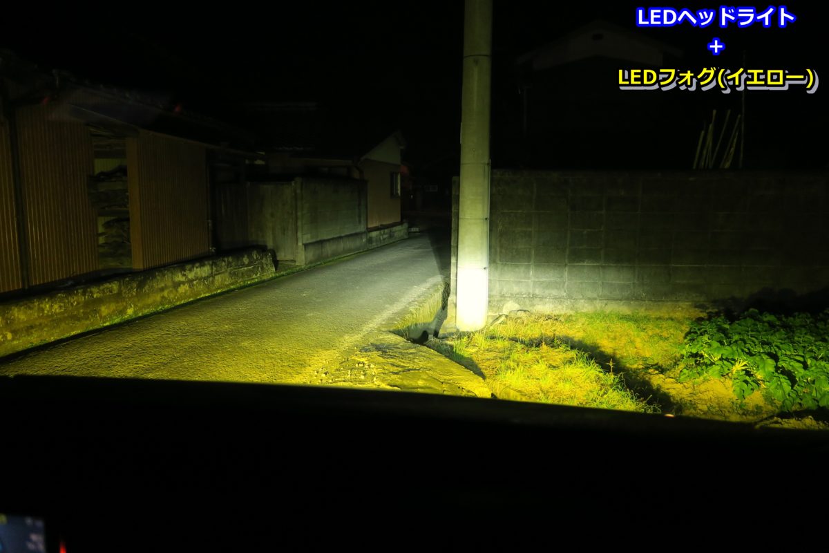 フォグランプは補助ライトなので、照射範囲はヘッドライトよりも下に集中していますが、ヘッドライトだけでは見えなかった広い両側の範囲も照らしてくれています♪