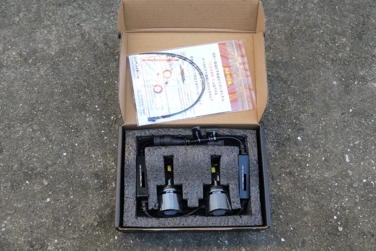箱の中にはLEDバルブ説明書、取り付け時の配光角度を調整する為の六角レンチとケーブルを束ねるタイラップなどが入っていました!