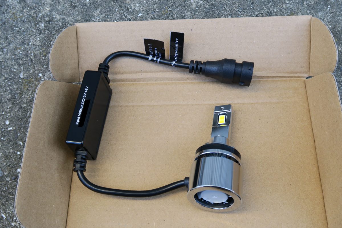 ヘッドライトの時に取り付けたDSシリーズはバルブだけでしたが、今回のVシリーズではバルブとドライバーがケーブルで繋がっています。