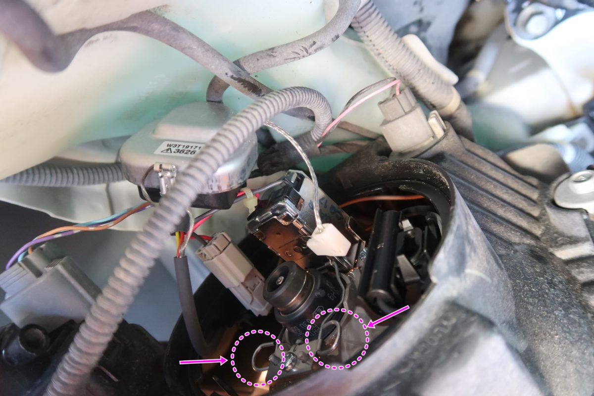 HID仕様のフィットシャトルのヘッドライトはリフレクタータイプで、D2Rというバルブが使われていました。