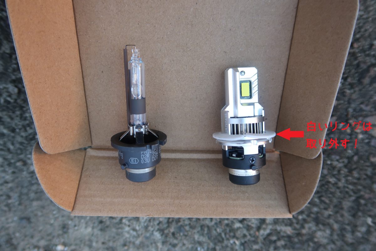 今回選択したセットは純正HIDバルブからLEDバルブに交換できるセットです。