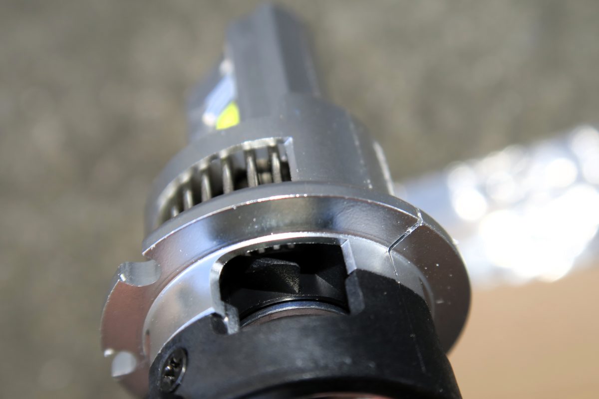 シルバーのキャップを外した後は、〇丸枠ピンを押し込んで両外側にスライドさせて外します。