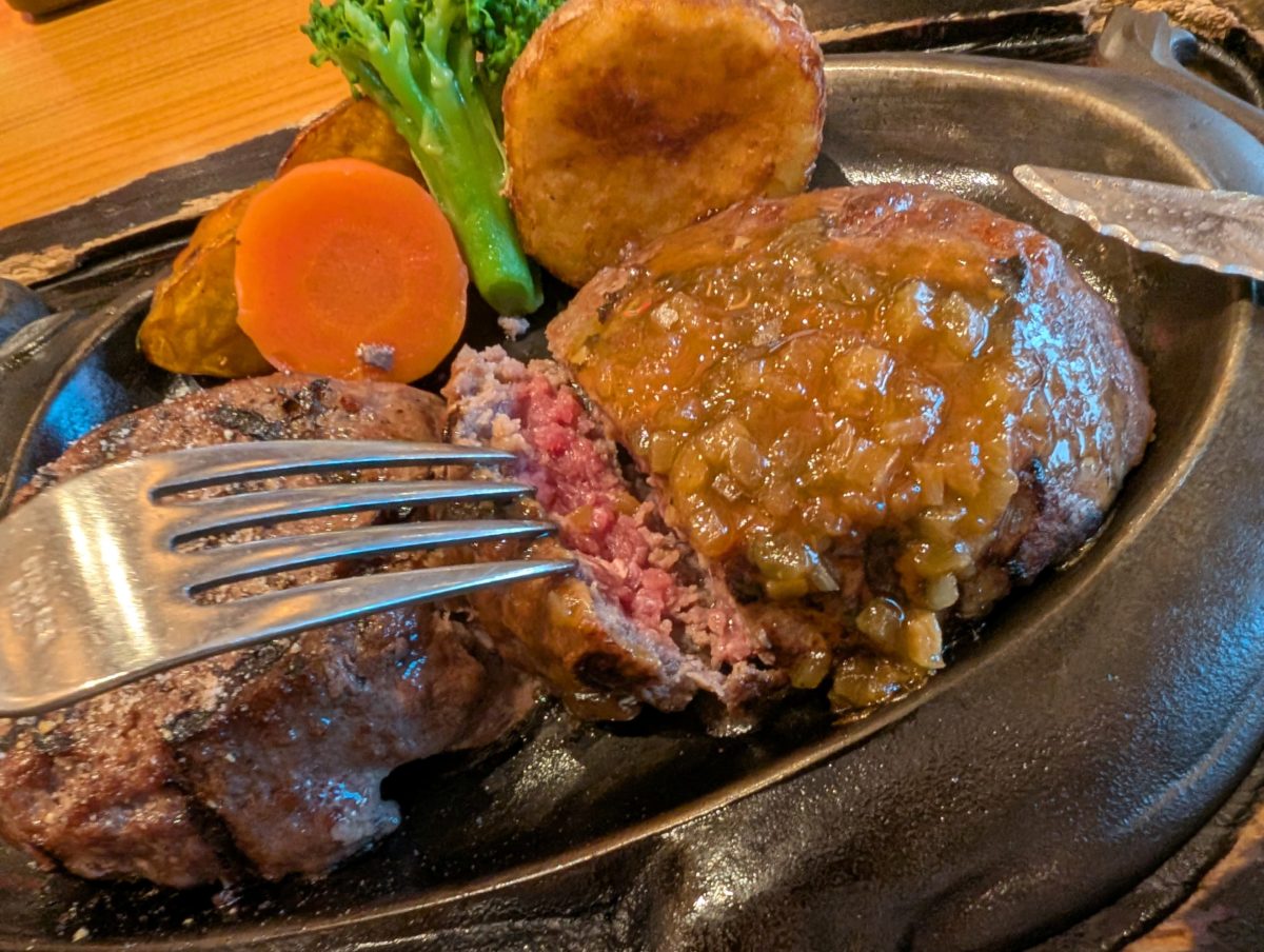 見た目はシンプルなTHEハンバーグですが、一口、二口食べると明らかに普通のハンバーグとは何か食感が全然違う絶品げんこつハンバーグ