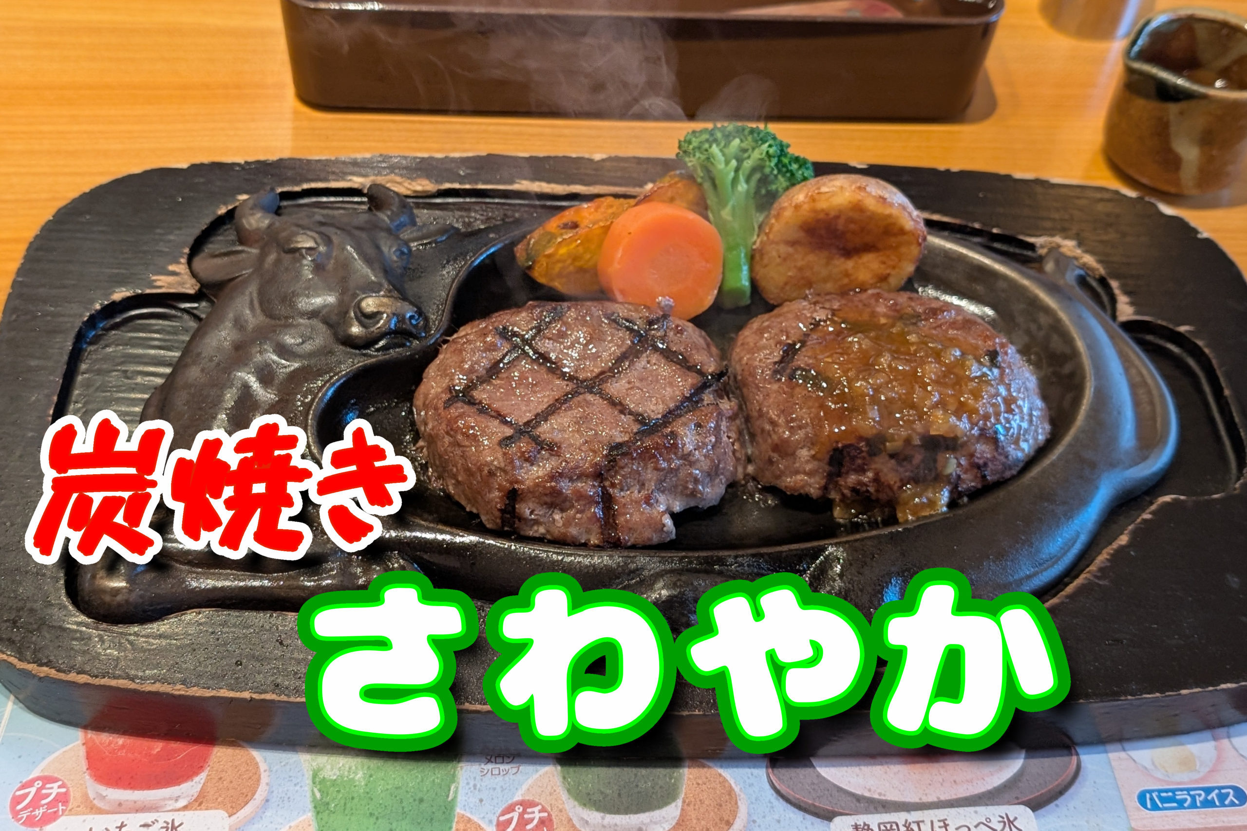 炭焼き さわやか SUMIYAKI RESTAURANT SAWAYAKA 』のメニューのハンバーグで、大都会東京にも存在しないファミレスチェーン店なのです。