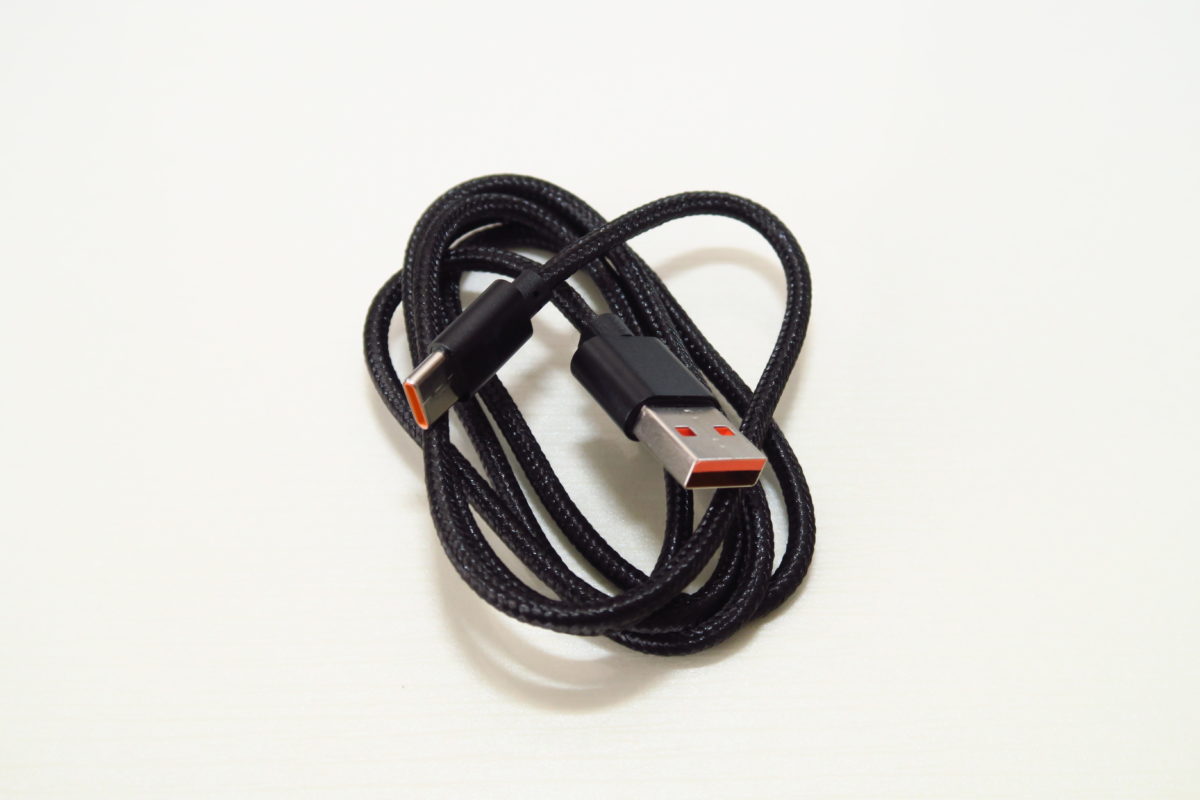 付属のUSB Cケーブルは丈夫な構造で、差込口のカラーがオレンジなのがお洒落です♪
