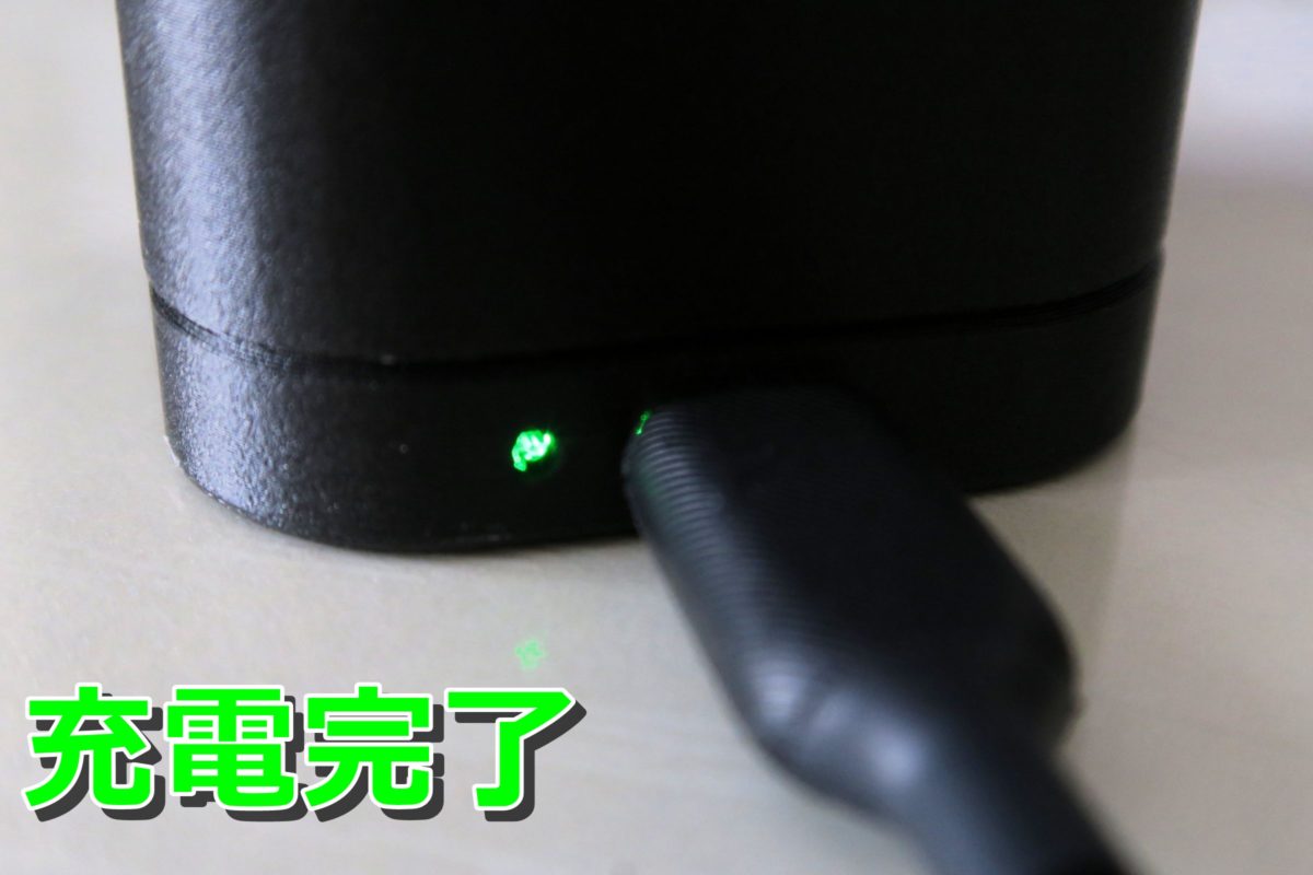 充電完了時には緑色のLEDが発光していました。