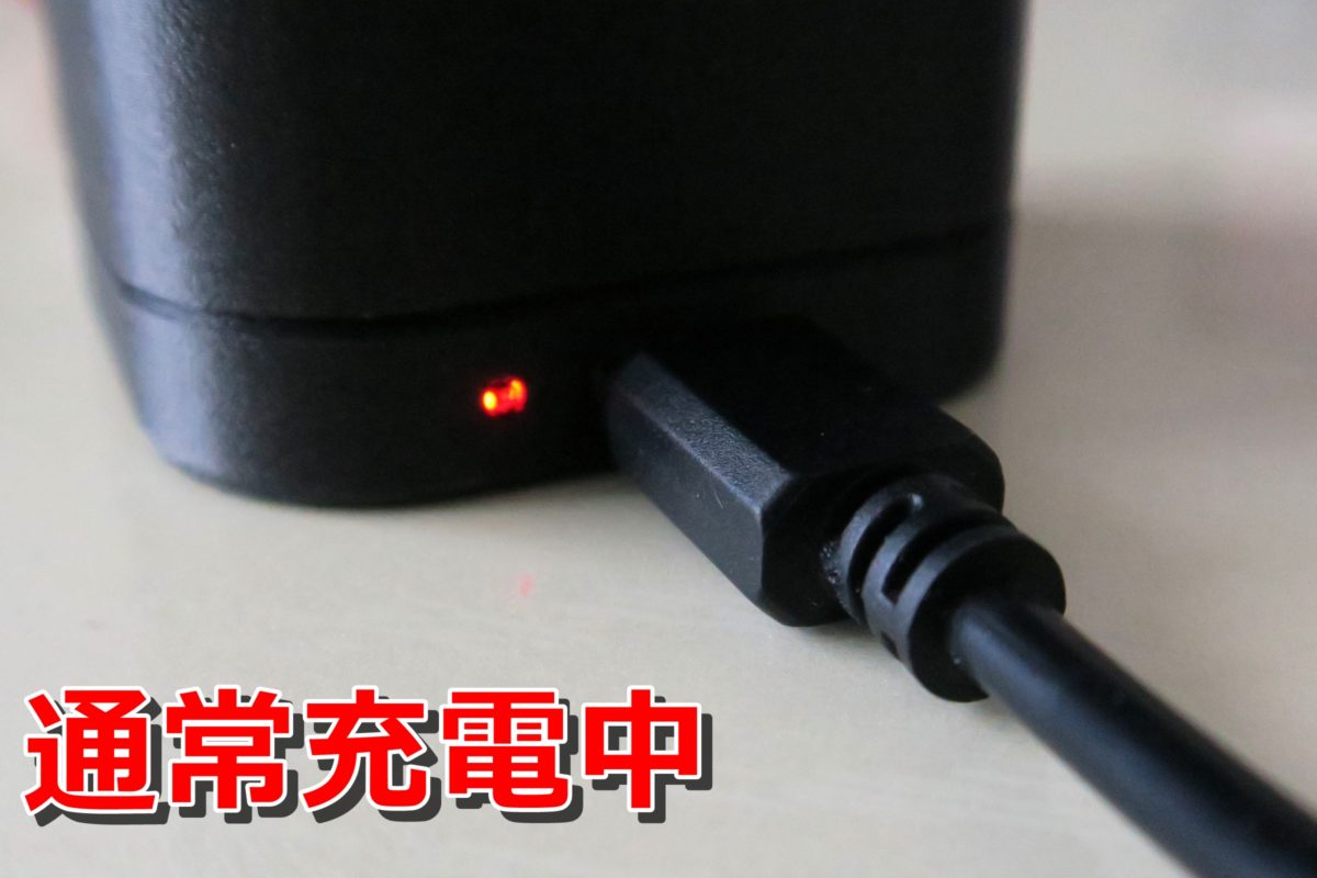 通常のUSBからの通常充電の時は赤のLEDが発光