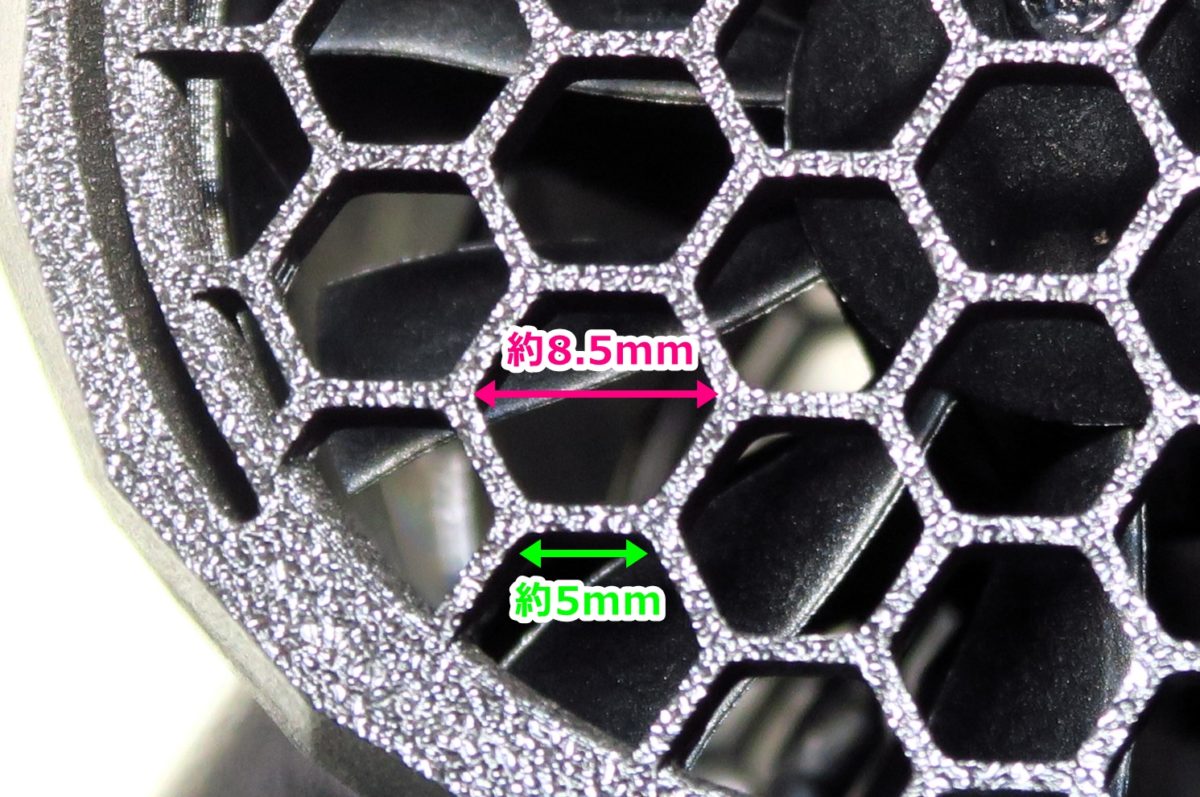 吸気側とメッシュの網目のどちらも同じデザインとなっていました。